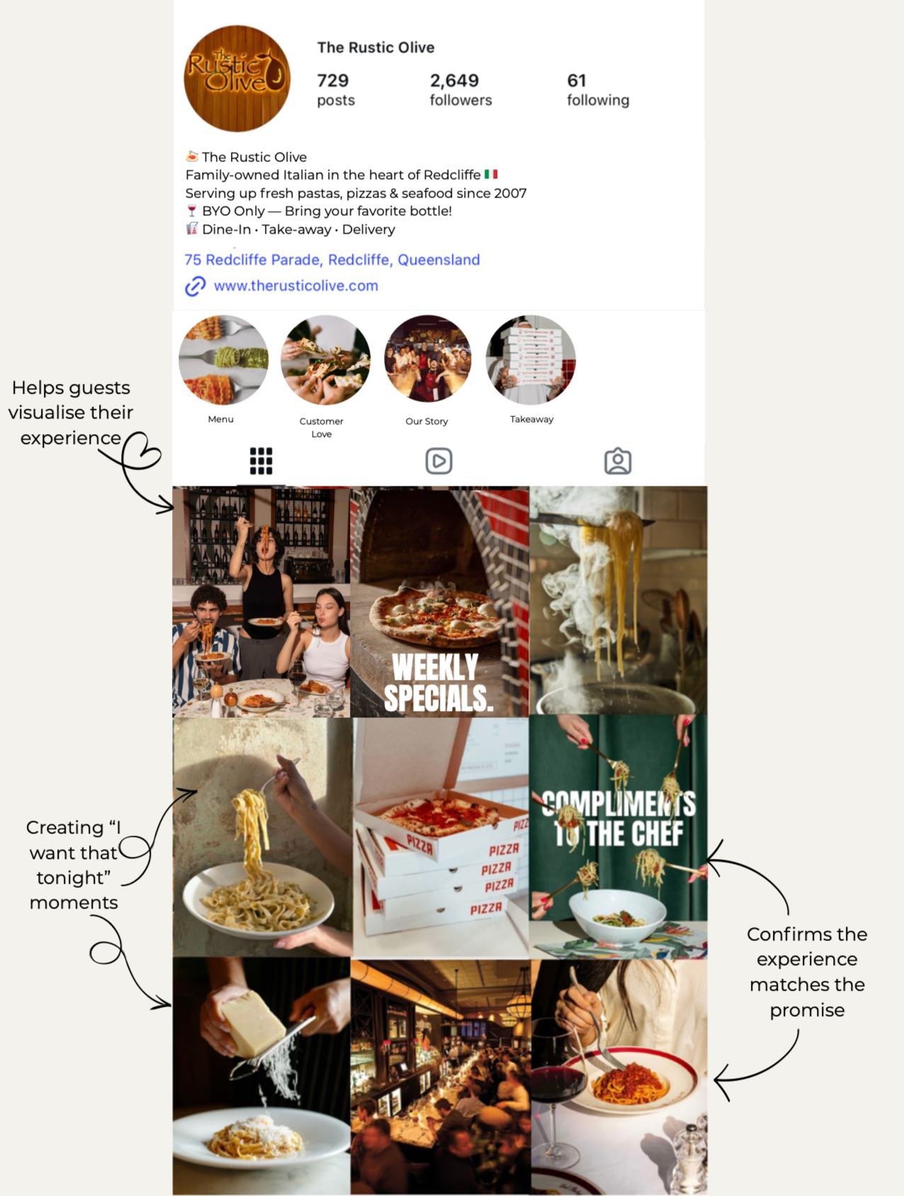 Your social presence documents the menu, not the experience of choosing you.